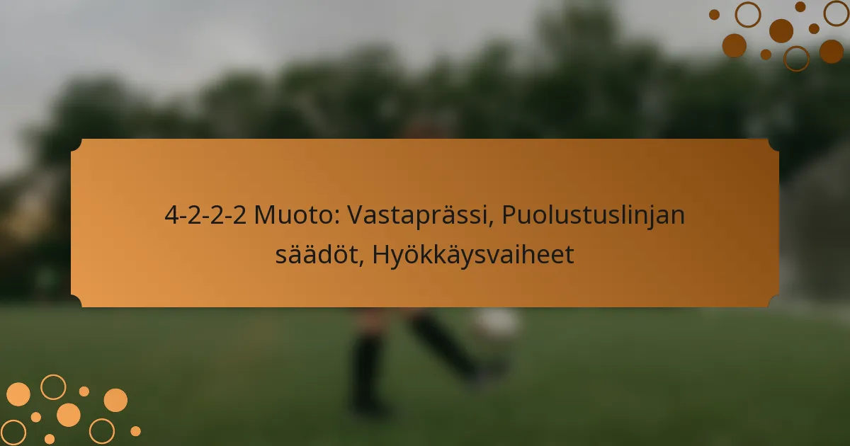 4-2-2-2 -muotoilussa puolustuslinjan säädöt ovat ratkaisevia rakenteen ylläpitämiseksi ja vastustajan hyökkäyksen tehokkaaksi torjumiseksi. Keskeiset säädöt liittyvät välimatkoihin, viestintään ja hyökkäysliikkeiden ennakoimiseen, jotta varmistetaan yhtenäinen puolustusstrategia.